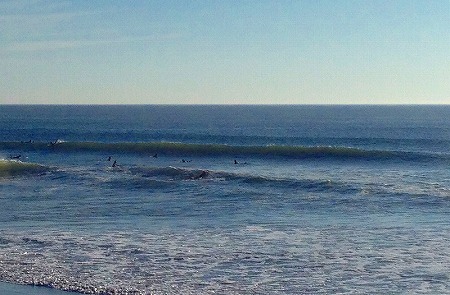 これ、満潮時の厚めの腹くらいの波。