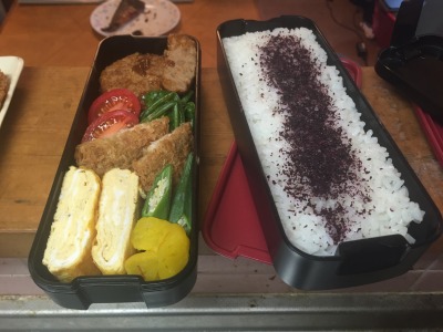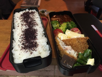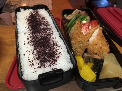 えーっと、、ハンバーグとコロッケ、卵焼き