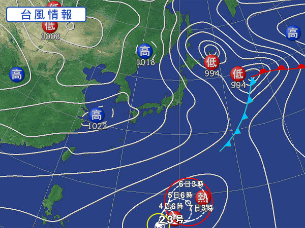 これらを総合して、外房気象波浪研究所の23号進路予測は、、