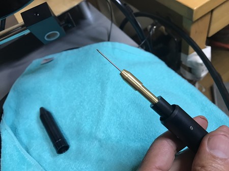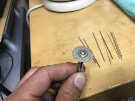 タングステンは非常に硬いので、ペン先を尖らせておくためには、通常の金銀用のヤスリでは効きませんので、工業用ダイヤがついた専用の工具で研ぎます。