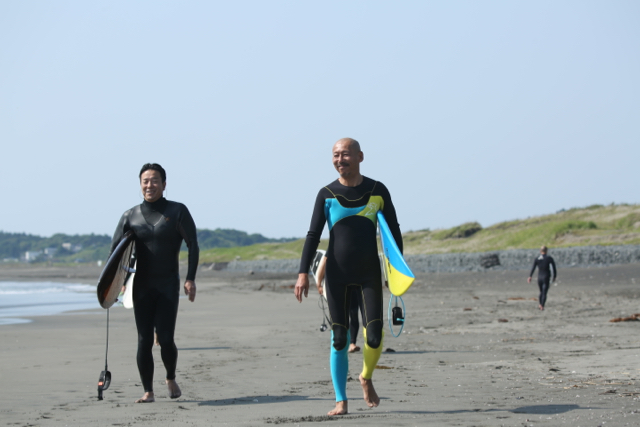 海岸に着くと、近所のサーフショップのオニーチャンがカメラ持っていました。