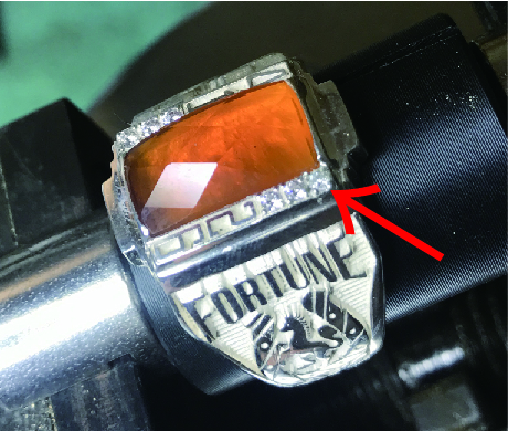 ある日、石座脇に飾り留めする小粒ダイヤの石留めをしたら・・