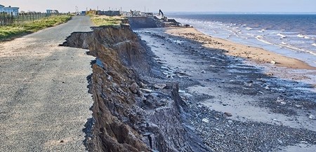 事故のあった堤防の空撮写真です。