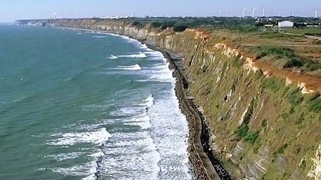 そして、飯岡から銚子にかけての屏風ヶ浦や一宮町以南のいすみ市の太東埼などの岩場も浸食防止の護岸工事で浸食土を出さなくなりました。ガケがテトラポットに覆われた屏風ヶ浦↓↓↓↓↓